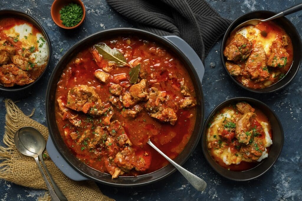Tender pork neck is slow-braised in a fiery chakalaka stew. This one-pot wonder is comforting and budget-friendly, served over pap or rice.